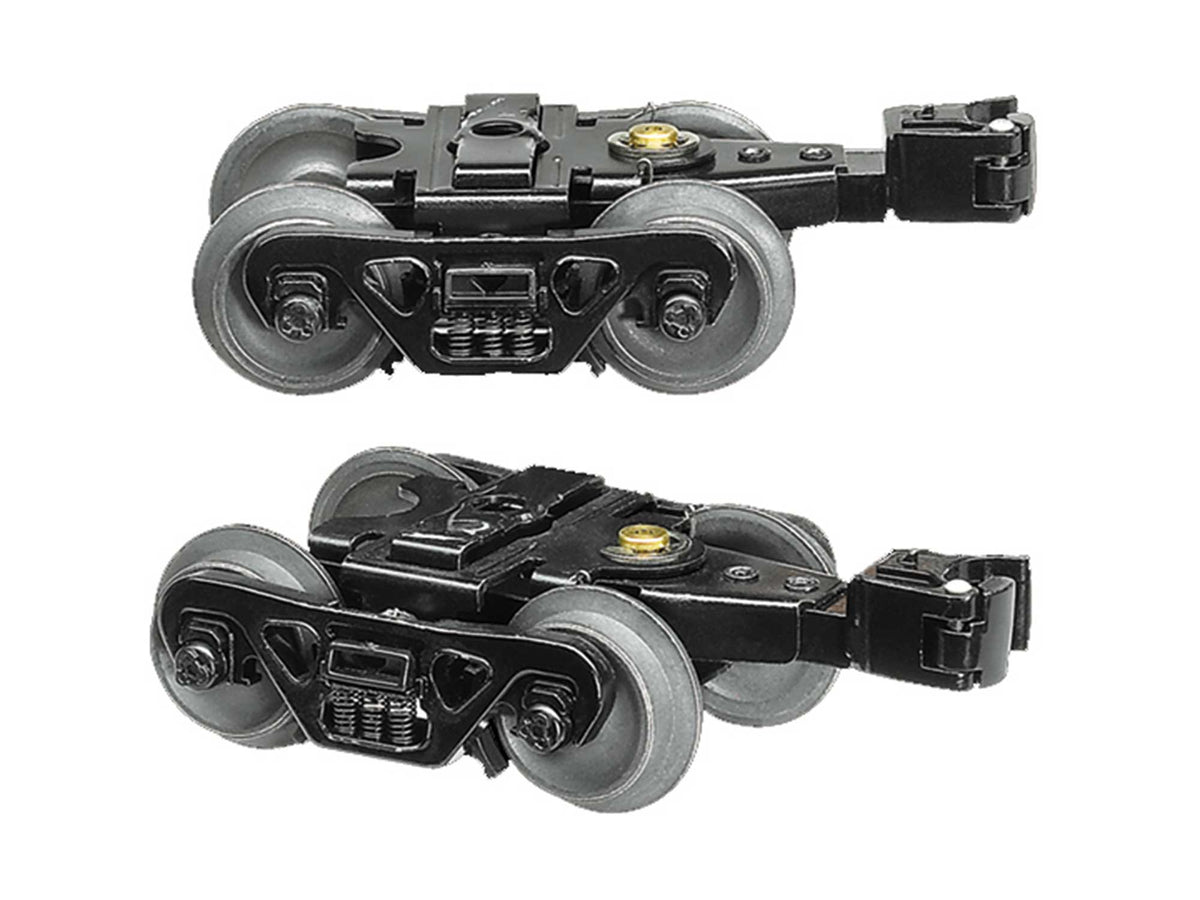 An extra set of Trucks! *Rotating bearing caps * *Metal coupler armature *Quick and easy to install *Adds weight and improves tracking *Box of two *Dimensions:Ê2 1/4" x 2 1/2" x 3" *Scale Type:ÊScale