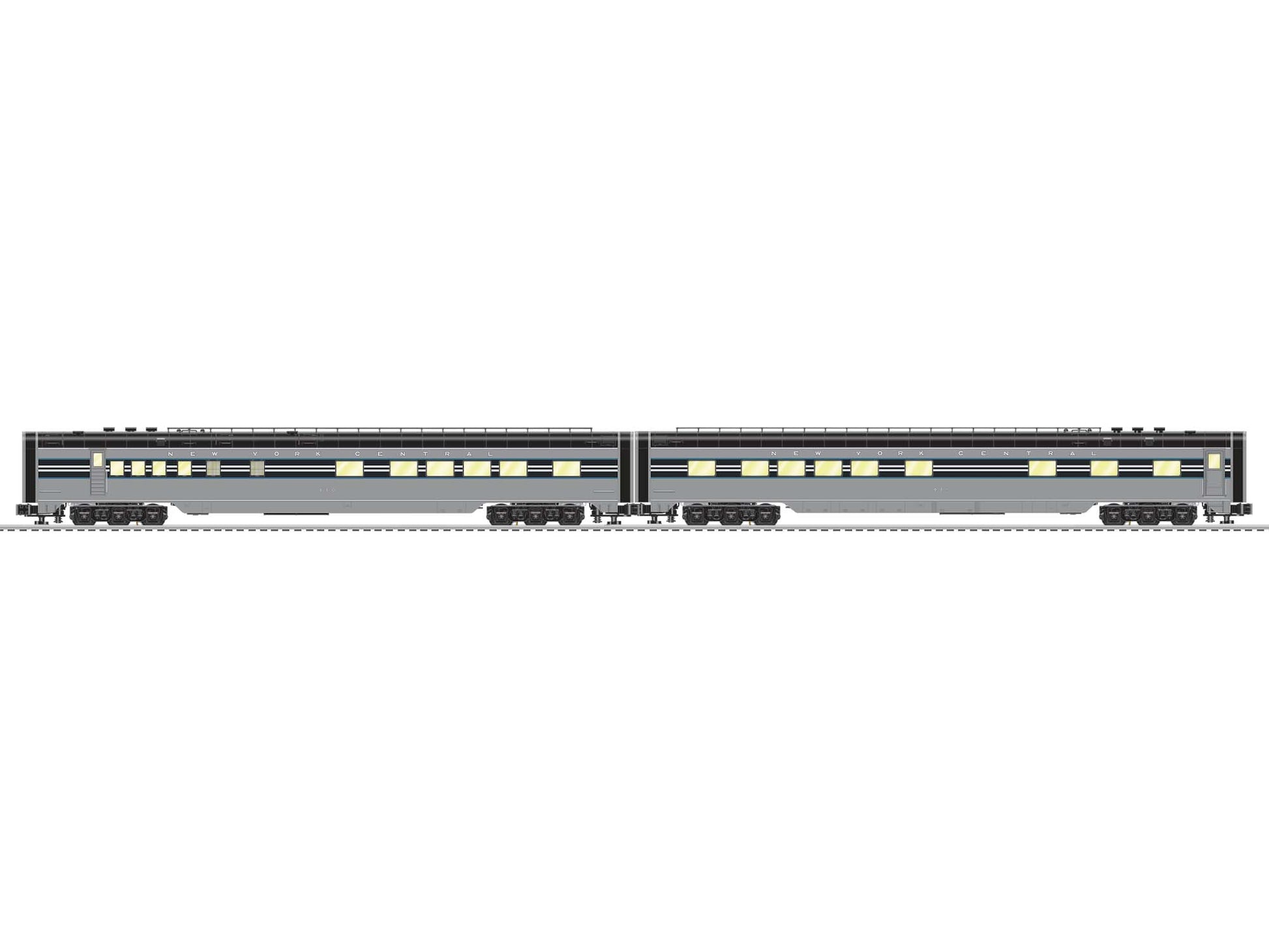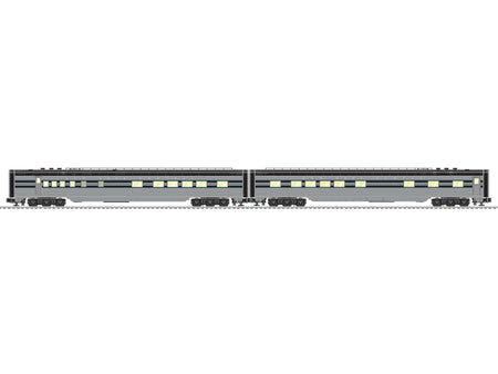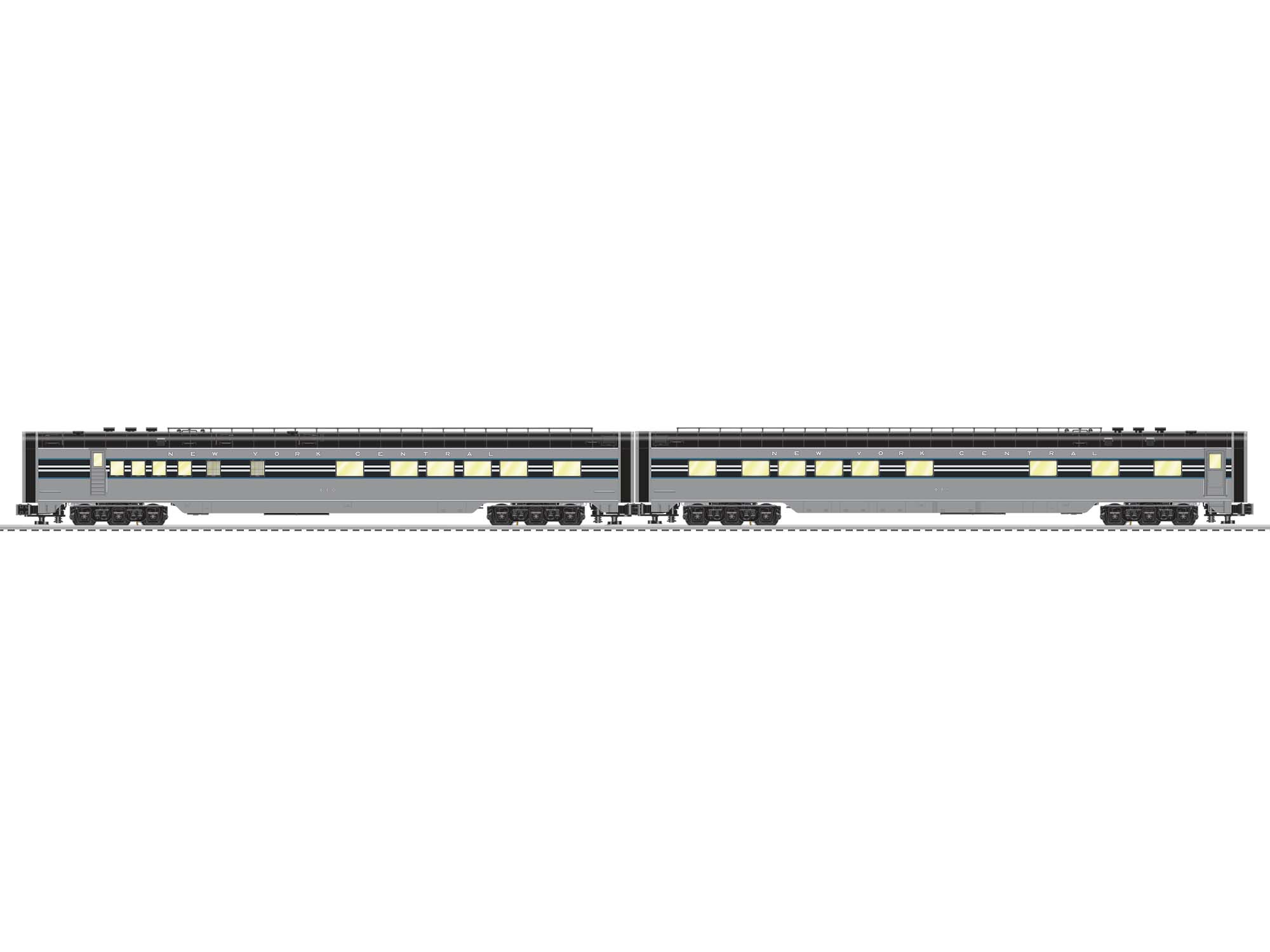 This run of cars will feature the 1938 as-delivered New York Central paint scheme including the blue accent stripes and Pullman lettering. * Flicker-free LED lighting * Molded plastic interiors * Die-cast sprung trucks *Kinematic couplers for close coupling * Easy conversion to scale couplers * Flexible diaphragms * Accessible with LEGACY » TrainMaster Control system * Custom recordings featuring multiple characters allow you to recreate an entire rail journey - from departure to arrival at your final destination * Arrival/departure announcements, dining reservation calls and more inroute dialog * "Clickety Clack" sounds in motion * Dimensions:æLength: 21" * * * * * * * * * *