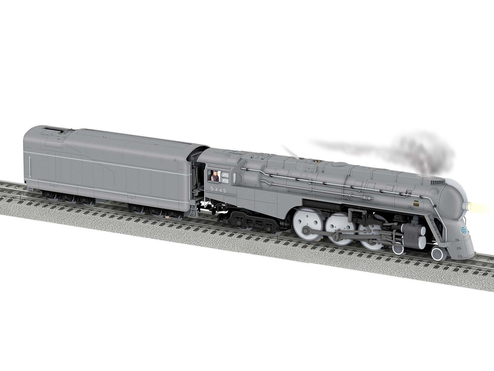 These locomotives feature full Legacy and Bluetooth control as well as whistle steam for the first time. * All three version that include the PT tender will also have our water scoop effect in the tender to simulate the operation through track pans at high speed.æ * LEGACY¬ Control System equipped _ able to run in LEGACY¬ Control mode, in TrainMaster Command Control mode, or in Conventional mode with a standard transformer * Bluetooth¬ Control - Operate with Universal Remote or LionChief¬ App *Lionel Voice Control (LVC) - run your locomotive by speaking commands into your phone via LionChief¬ App * Odyssey¬ II Speed Control * IR Transmitter that works with LCS SensorTrack» * Whistle steam * Water scoop steam effect * Powerful maintenance-free motor with momentum flywheel * Wireless Tether» connection between locomotive and tender * ElectroCoupler» on rear of tender * Directional lighting including operating headlight and back-up light on rear of tender* Bicolor illuminated classification lights on the front of locomotive where applicable. Using a Legacy controller, change the color of the classification lights between white or green *Traction tires *Interior illumination in cab *Die-cast metal locomotive body, pilot, and trucks *Die-cast metal tender body and trucks *High level of separately applied metal details *Separately applied builder's plate *Synchronized fan-driven smoke unit *Adjustable smoke output *Authentically detailed cab interior *Cab "glass" windows *Engineer and fireman figures *LEGACY¬ RailSounds¬ sound system featuring: *CrewTalk» dialog with different scenarios depending on whether the locomotive is in motion or stopped *TrainSounds that mimic operating dialog when the locomotive is in motion or stopped *Six official railroad speeds with CrewTalk dialog *DynaChuff» synchronized with 32 levels of intensity as the locomotive gains speed *LEGACY¬ "Real-Time Quilling Whistle" control with instant response for realistic signature "quilling" and correctly timed warning signals - 5 different whistles to choose from for a more customized experience. *Single hit or continuous mechanical bell sounds - 5 levels of bell pitching for customized sounds *Sequence Control: plays the sound effects of an entire trip, including warning sounds and announcements, based on the movement and speed of the locomotive *Current speed and fuel dialog, coal or oil loading sound effects *Dimensions:æLength: Loco 14 1/4", Tender 13"