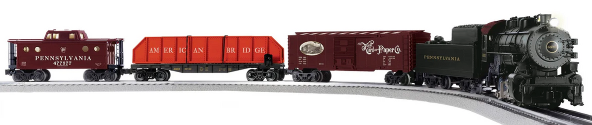 Hauling goods from across the keystone of the nation, this Pennsylvania freight carries the commerce of the commonwealth. Updated with new decoration and rolling stock including cars inspired by two Pennsylvania businesses, the penn keystone is the perfect way to start your empire! It even includes a bridge load that can be removed from the flatcar and assembled for your layout.