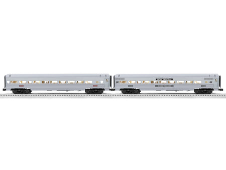 PASSENGER CARS FEATURE: * Aluminum body construction * Die-cast sprung trucks * Operating couplers w/hidden tabs *Opening doors * Flicker-free LED interior lighting * Complete interiors with figures * Separately applied detail parts * Dimensions:æLength: 19"