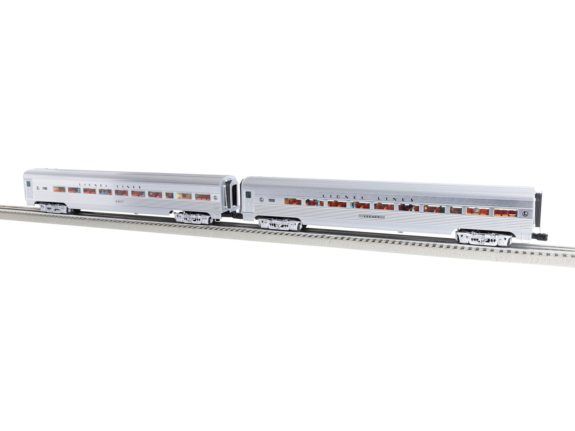 PASSENGER CARS FEATURE: * Aluminum body construction * Die-cast sprung trucks * Operating couplers w/hidden tabs *Opening doors * Flicker-free LED interior lighting * Complete interiors with figures * Separately applied detail parts * Dimensions:æLength: 19"