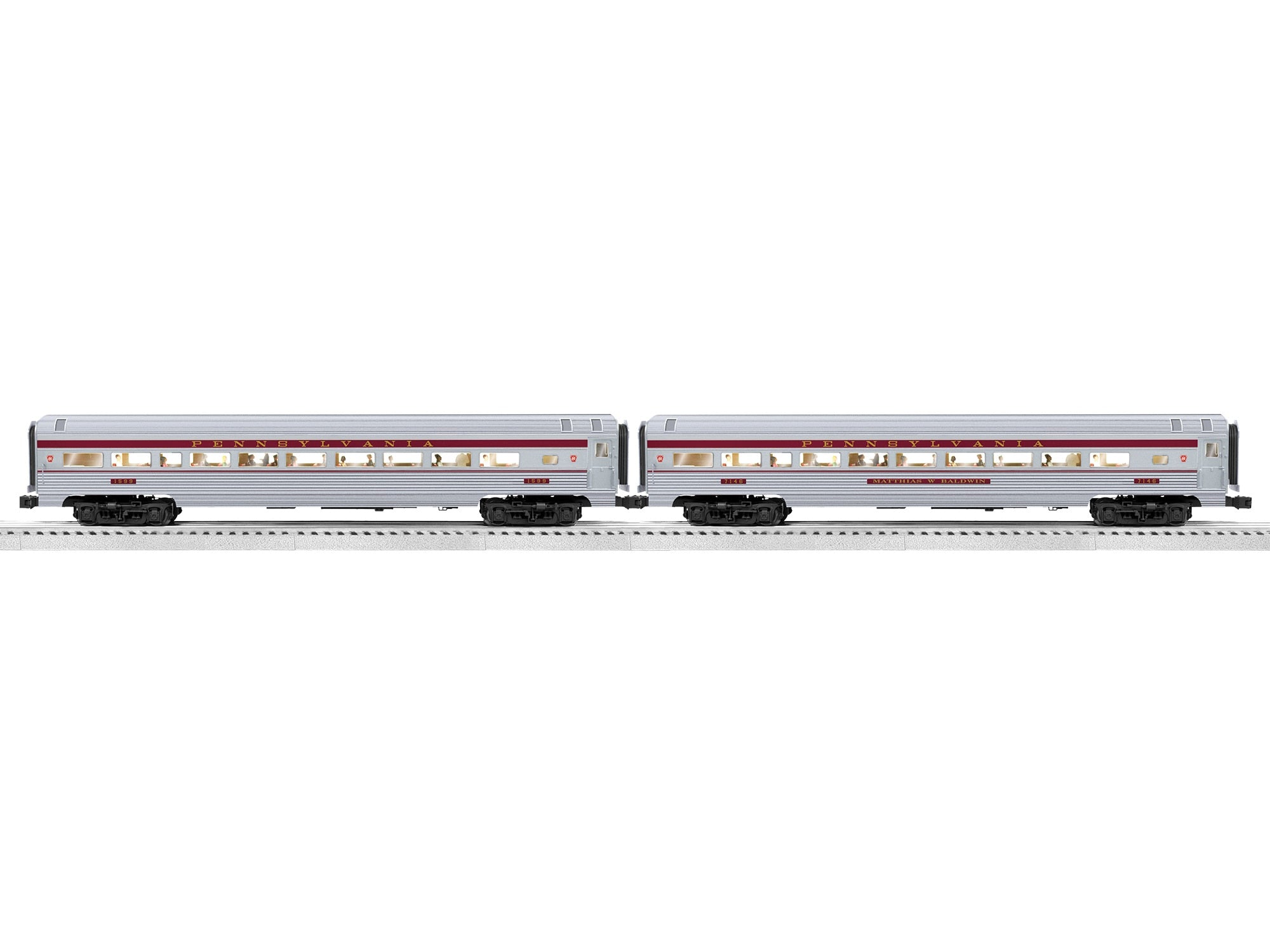 PASSENGER CARS FEATURE: * Aluminum body construction * Die-cast sprung trucks * Operating couplers w/hidden tabs *Opening doors * Flicker-free LED interior lighting * Complete interiors with figures * Separately applied detail parts * Dimensions:æLength: 19"