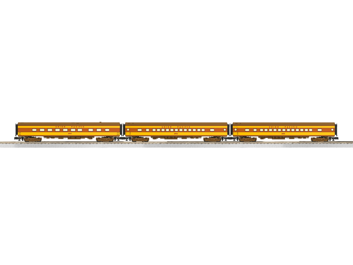 The first aluminum-bodied passenger cars in the Lionel catalog in almost a decade, we think fans of these cars will be very pleased to see their return! We've added our StationSounds diner features to the observation car in the 4 pack so that we can also include the air horn!Ê * * *Aluminum body construction *Die-cast sprung trucks *Operating couplers with hidden tabs *Opening doors *Flicker-free LED interior lighting *Complete interiors with figures *Separately applied detail parts *Dimensions: Length: 19" each