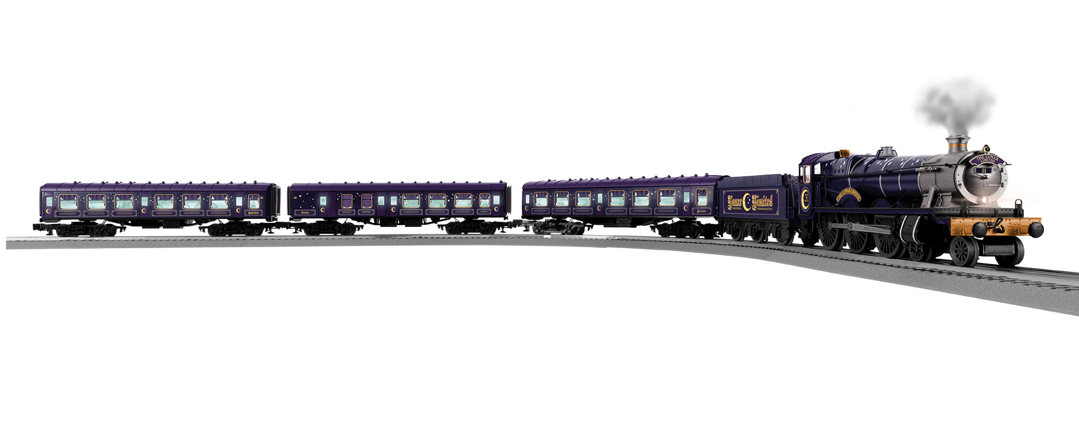 IN ORDER TO BE 100% SURE OF AVAILABILITY PRE ORDER BY 8 NOVEMBER 2025.Ê * * The Lunar Limited LionChief Halloween Passenger Set with Bluetooth 5.0 * *Set includes: * 4-6-0 Locomotive & Tender * Passenger Coach * Haunted Crescent Coach with Sounds * Combination Car * Eight pieces of O36 curved FasTrack¨ * Two FasTrack¨ 10" straight track sections * One Plug-Expand-Play¨ Power Lock-on section * One LionChief¨ FasTrack¨ Terminal section* Wall-pack power supply *LionChief¨ remote for locomotive *LOCOMOTIVE FEATURES: *Electric locomotive controlled by included LionChief¨ remote, LionChief¨ Universal Remote (sold separately) or Bluetoothª CAB3 App *RailSounds RCª sound system with steam chuffing and background sounds, whistle, bell, and user-activated announcements *Lionel Voice Control (LVC) - run your locomotive by speaking commands into your phone via Lionel Cab3¨ App *Operating headlight *Powerful maintenance-free motor *Operating couplers *Puffing smoke *On/Off switch for smoke *Operating coupler on tender rear *Cab window "glass" *Traction Tires *Die-cast metal locomotive body *Die-cast metal frame on tender *Separately-applied marker lamps, driver linkage, coupler air lines and buffers *TENDER FEATURES: *Operating couplers *PASSENGER CAR FEATURES: *Interior illumination *Operating couplers *Soft molded diaphragms between cars *HAUNTED CRESCENT COACH W/ SOUNDS FEATURES: *Plays spooky haunted Halloween themed sounds on a timed loop *On/Off switch for sounds * *Operating couplers *Interior illumination with flickering effect *Soft molded diaphragms on ear ends *LIONCHIEF¨ REMOTE FEATURES: *Forward and reverse speed control knob * Three buttons to activate whistle, bell, and special announcements *Requires three AAA alkaline batteries (not included) *IR Transmitter that works with LCS SensorTrackª * *Powerful maintenance-free motor with momentum flywheel * *Wireless Tetherª connection between locomotive and tender * *ElectroCouplerª on rear of tender * *Directional lighting including operating headlight and back-up light on rear of tender