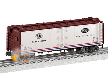HOT BOX!!! A dangerous concern on the railroad, an overheated journal box is no plaything. Thankfully on our railroads we can safely simulate all the excitement and drama with the return of the "Hot Box Reefer" in O scale! These fun cars operate with LEGACY control and play through a full scenario of an overheated journal. It starts with a whiff of smoke and crew dialog. Before long, the journal will erupt in "flame" and smoke as it screeches loudly. After coming to a safe emergency stop, you'll hear the crew put out the flames and give an all clear to limp along to the next siding to set out the car for further repair. There's even an ElectroCoupler to make that easier. * * *Flickering lights, smoke, screeching and crew dialog of a "hot box" emergency *All new sound recordings *Max/Min switch *Volume pot *LEGACY Control *Die-cast trucks and operating couplers *Roof hatches *ElectroCoupler *Dimensions: Length: 11 1/4"