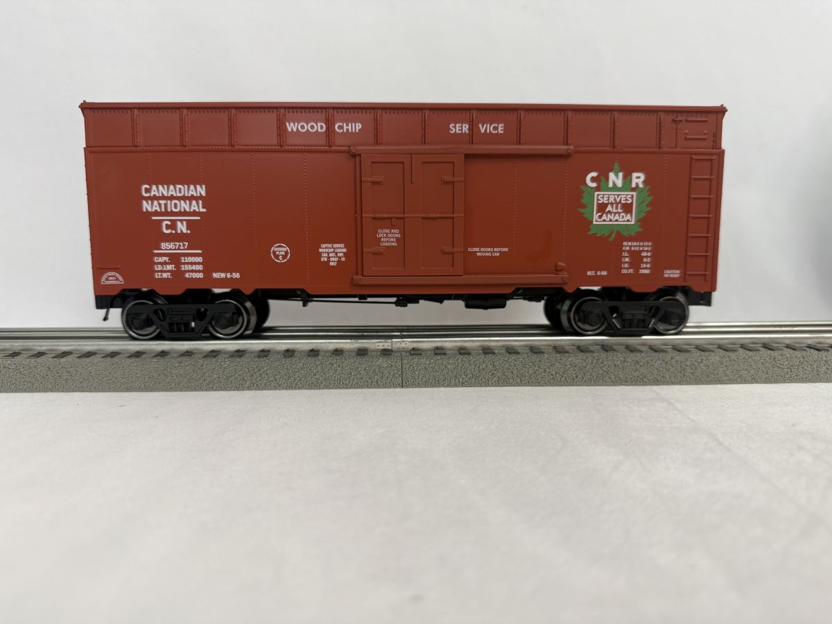 These new RMT 'Trainmaster' Premium cars are new tooling with regards to O gauge scale size, bodyshell and underframe details...more exciting detail for the same low RMT pricing!!! * * * The RMT-New O-gauge Trainmaster Premium Line cars are true FULL SIZE 3-rail O-gauge freight cars * * The woodchip cars feature: * Limited Edition RR names * Different roadnumbers for each RR * Up to 300 different roadNUMBERs for each RR name * Realistic painting -lettering - numbers * Opening side doors * DIECAST underframe w/piping detail * DIECAST metal trucks w/operating couplers- separate air hose detail* FULL SIZE O-gauge 1/48 Dimensions *0-36 suggested minimum radius *CarBody Approx. 10 1/4in.L x 3 1/2in.H x 2 7/8in.W