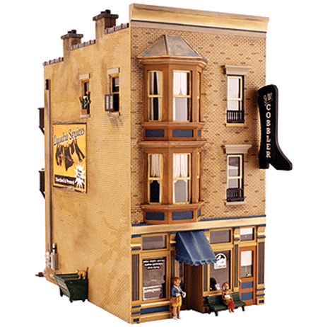.W. Cobbler models a downtown three-story storefront that houses the local shoemaker shop. A doorbell jingles and the rugged smell of leather greets your nose as you walk through the shop door. You can just imagine the village shoemaker sitting hunched over his cluttered workbench topstitching some new boots or resoling a pair of shoes.